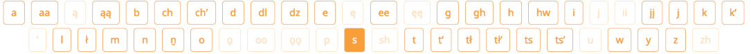 Selecting Apache enables searching in the Apache language. It also sets the alphabet to only include letters used in Apache. Click a letter to start browsing or start typing to search